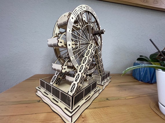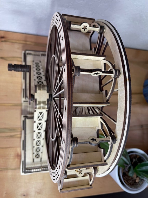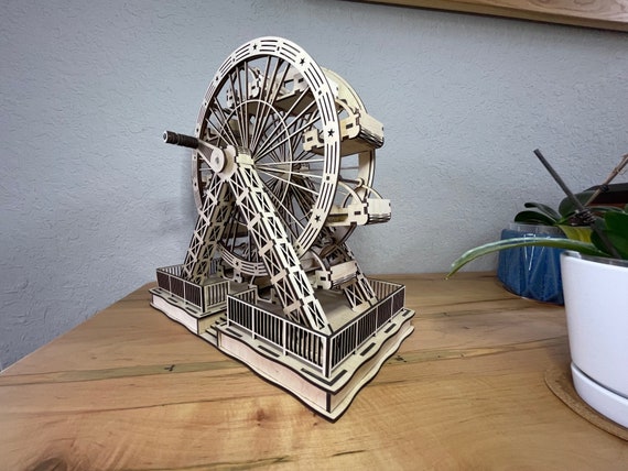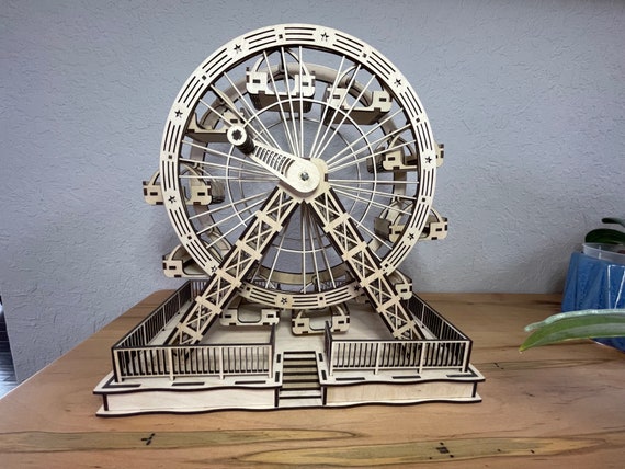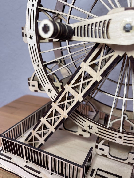 🎡 ¡Crea tu propia noria cortada a láser, un divertido modelo a escala que simula el movimiento real! Ideal para decorar tu escritorio, exhibir en estanterías o como un tema de conversación en fiestas y eventos especiales 🎉.
