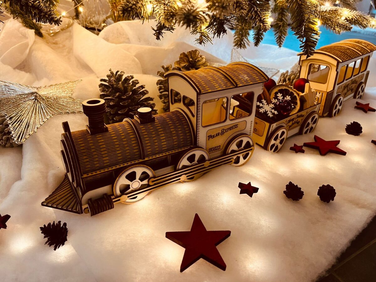 Tren de Navidad SVG y DXF para Corte Láser – Plantilla Lightburn para Decoración Festiva