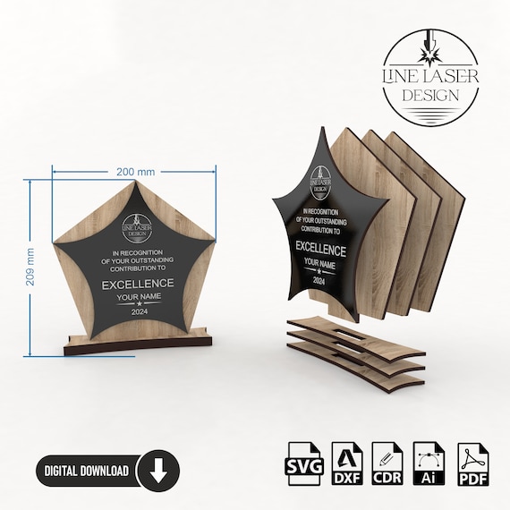 Trofeo de corte láser: 3 diseños únicos en archivos SVG para madera y plexiglás
