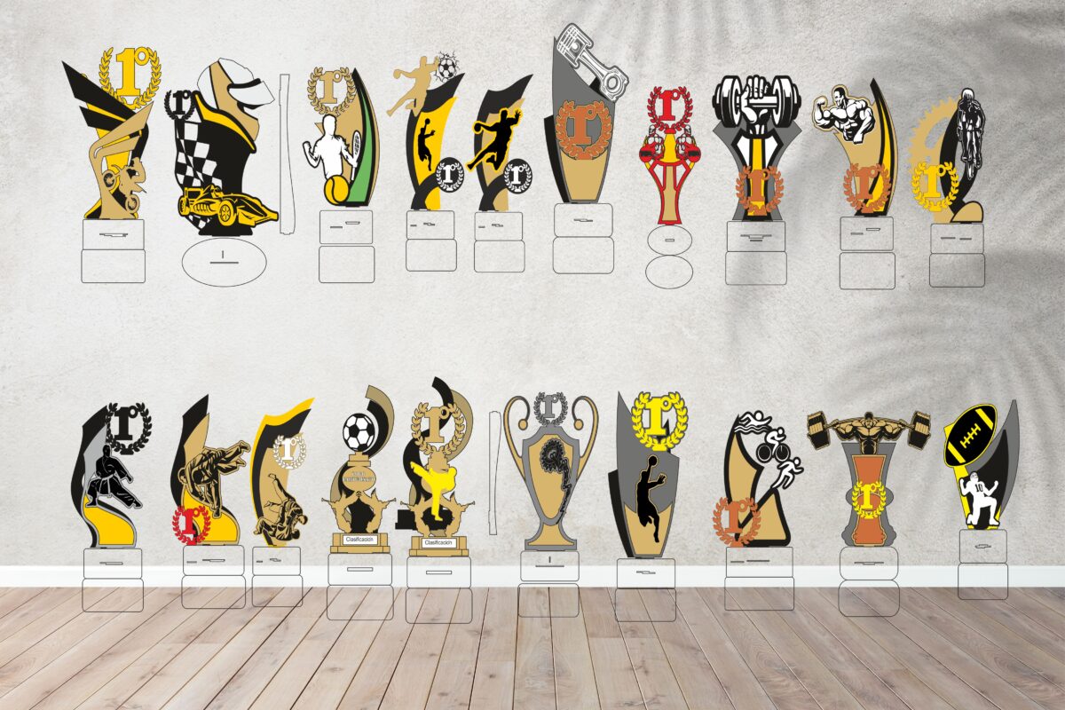 diseños de trofeos multicapas para mdf o acrilico para 3mm, pero se puede modificar a otros espesores