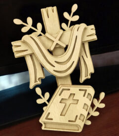 Cruz Religiosa con Biblia – Patrón de Corte Láser para Marquetería (PDF, DXF, SVG, EPS)