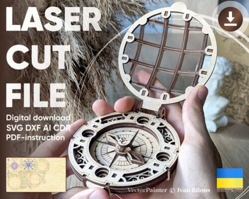 Brújula de madera multicapa SVG para decoración de pared, arte digital y corte láser CNC