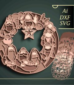 Escena de la Natividad en SVG y PDF para Corte Láser – José y Niño Jesús, Decoración Navideña Glowforge