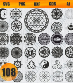 USDPaquete de 108 Símbolos de Geometría Sagrada para Corte Láser – Archivos SVG, AI, CDR, DXF y PNG