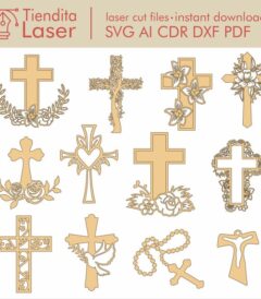 Corte Láser de Cruz para Bautismo – Archivos Dxf, Svg, Ai, Eps, Pdf, Cdr para Descarga Instantánea